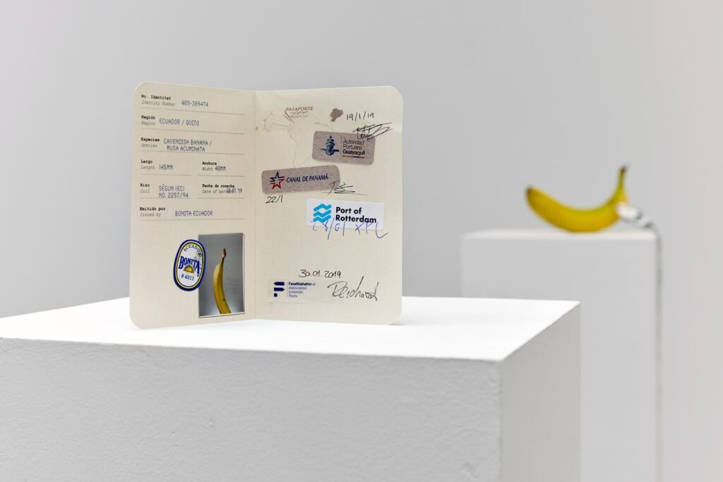 The journey of a common supermarket banana that was traced all the way from its Ecuadorian origin to Iceland unveils the dizzying travels facilitated by the global food trade industry. An extensive “from” label illustrates how foreign our familiar food items are to the landscapes where we consume them. A banana’s passport, stamped in international travel visas, proves how our ingredients often travel across borders and lands much more than many of us do, or can.