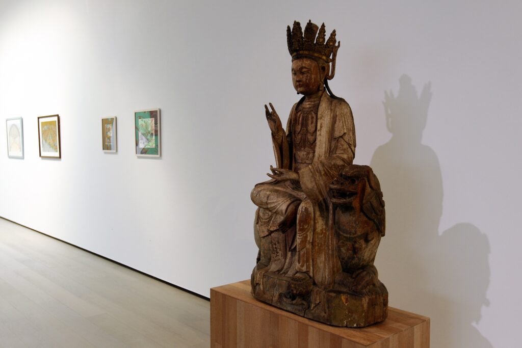 The Guanyin god sculpture (14th century) comes from China and is the Chinese interpretation of the goddess of comfort and mercy. In traditional Chinese religion, Taoism and Chinese Buddhism, Guanyin is often prayed to in times of danger because the story goes that Guanyin rescues people who are in danger.