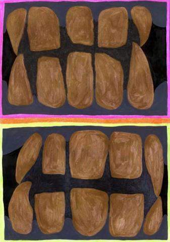 Tanden III Tanden III (2013) 28x41x0cm · Gold paint, colored pencil, ink, asphalt paint, pencil and charcoal Richtje Reinsma Courtesy of the artist Richtje Reinsma