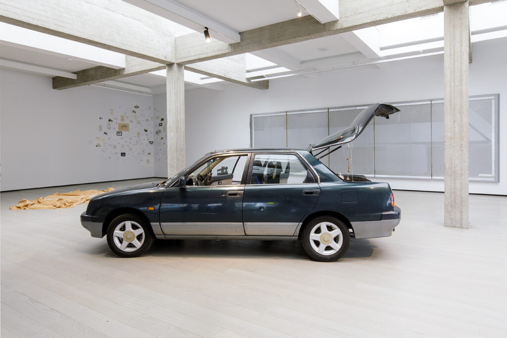 Another important touchstone in the development of this exhibition was Charissa Tarranova’s book ‘Automotive Prosthetic’ which was published in 2014. In this book Terranova considers the car as a “rhetorical device, functioning as a mode of representation, framing device, means of debasement, and conduit for the generalised explosion of media beyond the conventional fulcrum of painting and sculpture”. At the heart of Terranova’s thesis is the idea that in the 21st century the car has become a naturalised extension of the human body. This seems an important area of consideration as boundaries between the car and the human body are blurring and the human-machine relationship changes. The recent advent of self-driving technology combined with the environmental crisis is altering how we utilise and think about the car. We are now witnessing the emergence of a new dynamic in the relationship between humans and machines; whereby the car has become an extension of the human body which in many cases works autonomously and can decide where to go and at what speed. In the face of these developments one wonders if the car will remain such a potent symbol of power, desire and escape?